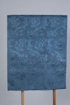 blue and polychrome silk with metallic thread and flowers and berries
