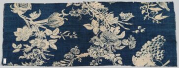 satin silk weave, backed with leather taffeta linen and blue and chenille embroidery