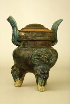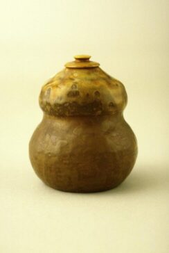 stoneware with brown and yellow glaze and ivory lid