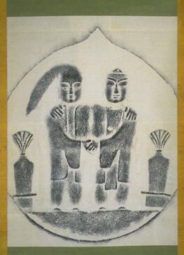 Ink, gouache, and gold pigment on cotton