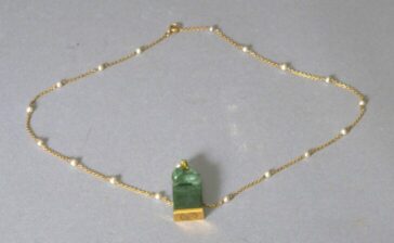 gold and jade with fabric chain