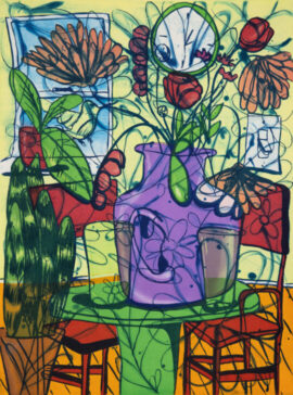 Color aquatint, sugarlift, and spitbite aquatints on Somerset textured white paper.