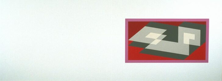 Formulation: Articulation is a two-part portfolio totaling 127 screenprints. The prints are divided into folders that contain their own brief introductions, often describing the design process, a print’s relation to an earlier piece by the artist, or various perspectives from which to view the print. Josef Albers spent two years working on the piece towards the end of his lifetime. The series can be viewed as the summation of his life’s work since it draws on concepts that he developed throughout his career. In the introduction to the portfolios he writes, “Our aim is not a retrospective report; the book aims at Art itself, meaning: no retrospective in the usual sense. These are visual realizations here presented outspoken in silkscreen.” Arguably, Albers’s most memorable body of work is his Homage to the Square, which he began in 1950 and continued to add to until his death in 1976. Thirty-eight of the prints in Formulation: Articulation are part of Homages. Another important contribution Albers had to color theory was his analysis Interaction of Color that he published a decade before Formulation: Articulation. The piece is more of a scientific examination of color while Formulation: Articulation is more of an artistic set of portfolios that draws on the theories he explored previously.