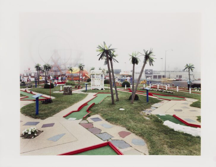Image of a minigolf course with a carnival in the left background with the Stone Pony music venue on the right.