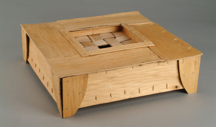tulip poplar bark, marked, woven and sewn with waxed linen thread