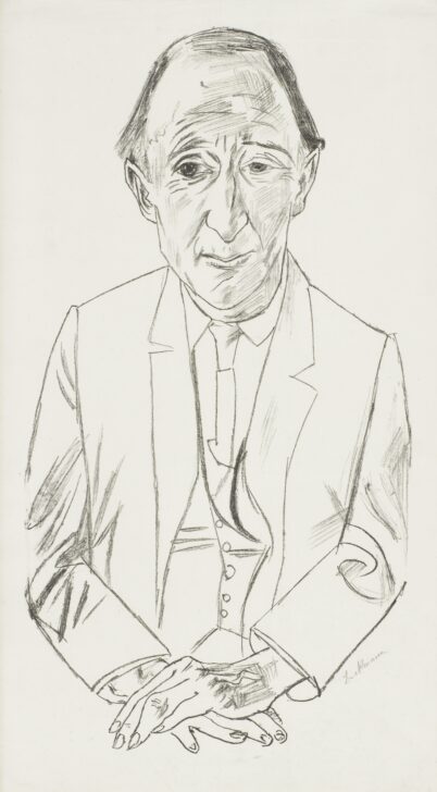 A portrait of a man from the waist up, his hands folded in his lap. He looks slightly to his left. His hair is combed and he wears a suit, vest, and tie.
