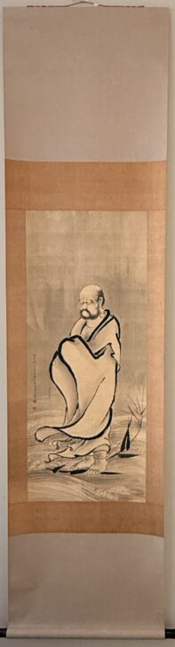 The signature on this painting tells us that this work was “reverently painted” by a lay practitioner of Zen, someone who was neither a monk nor a professional artist. The artist is otherwise unknown.