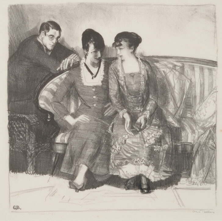 Emma Bellows and Elsie and Gene Speicher seated in Bellow's studio.