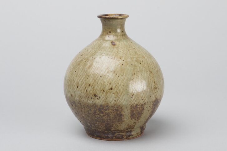 Wide bottle with a very narrow mouth and mishima-style texture.