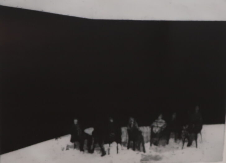 A group of people sitting in what appears to be a circle. The room they are in is darkened and with the features of the room and the figures within indistinguishable.