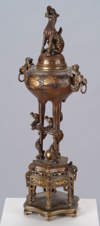 entire work is topped with a domed lid with an image of a kirin, a hooved
