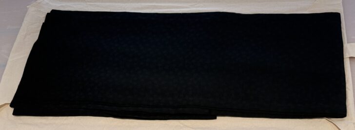 Thin black sheer Ro or Sha summer kimono with interwoven star motifs and one kamon (family crest) with no inner lining (hitoe).