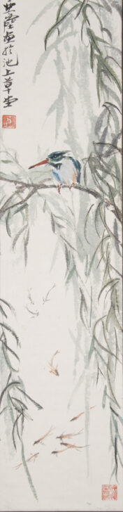 Kingfisher Perched on a Willow Branch
