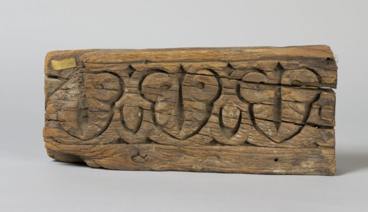 Two and a half prints, identical, long piece of wood with repeating pattern.