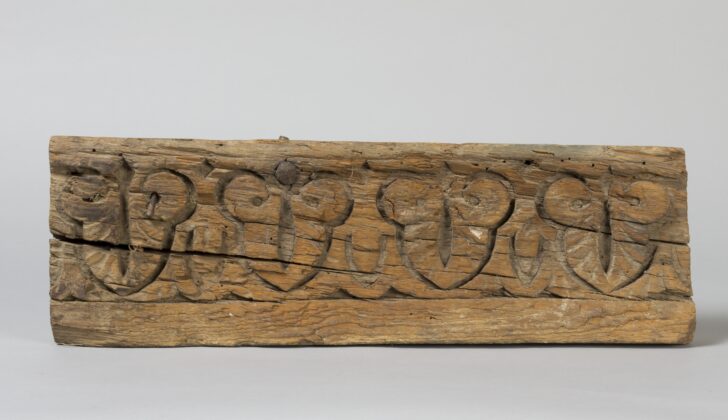 Four prints, identical, long piece of wood with repeating pattern and a border.