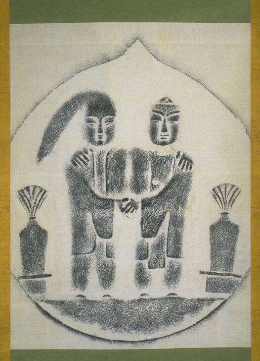 Rubbing of a Folk Carving: Patron Saint of Marriage (Dôsôshin), from Kami Imai, Higashi Chikuma, Shinshû Region
