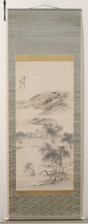 The artist, Yamamoto Baiistsu paints in a "boneless" manner, which consists of a conservative outline and light wash of colors, as we see somewhat here. He offered a softer, lighter, and more intimate view of the Nanga or Literati style painting.