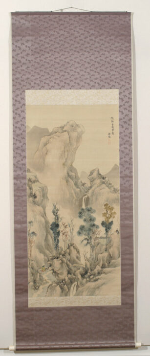 Hamada Kyodo was a doctor and painter. A typical subject matter of a Japanese painter, he painted a mountainous Japanese nature scene. Through his use of color and placement of trees, he emphasized the trees as a subject as opposed to the mountainous region in the background. His brushwork is also defined and specific.