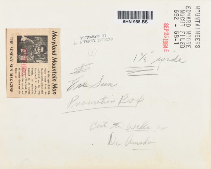 A man holding a violin sits on the porch of a wooden structure. A dog stands to the right of the man. Four white Xs drawn on the photograph outline a square around the man.