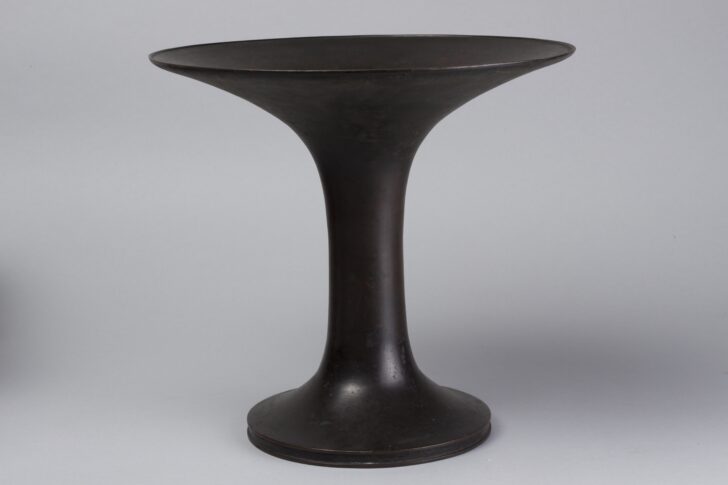 Bronze vase with raised plate top.
