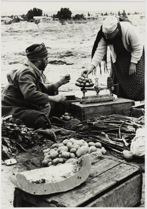 Weighing potatoes at market, Israel