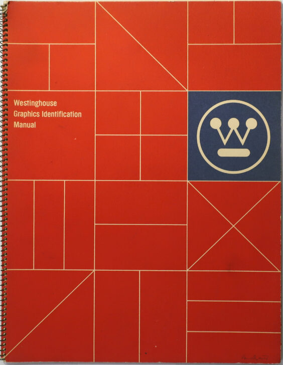 Booklet consisting of 32 pages, depicting various types of Westinghouse logotype, typeface, packaging, shipping banner, vehicle identification, binders, and nameplate.
